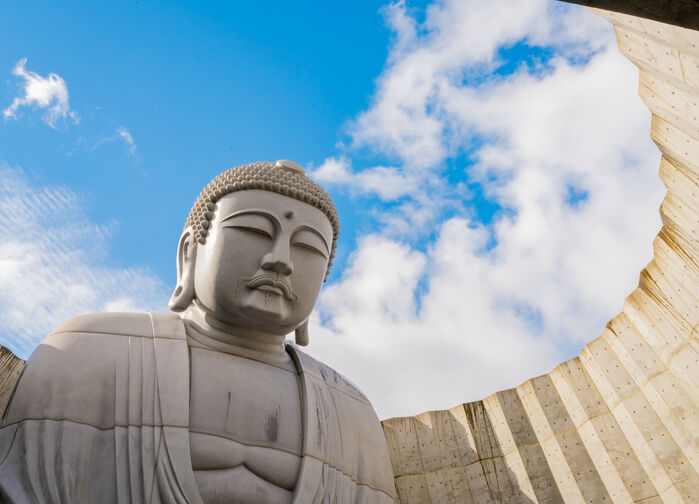 Her forenes moderne arkitektur og naturens skjønnhet i en åndelig opplevelse. Besøkende ledes gjennom en gang av betong og vann, omgitt av 150 000 lavendelplanter (i blomst sensommerstid), frem til en majestetisk Buddhastatue som reiser seg gjennom et hull i en jordhaug. Statuen er 13,5 meter høy og veier 1 500 tonn.