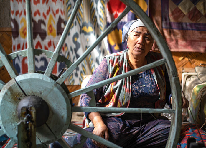 Reisen går via Margilan, som lenge har vært kjent for sin silkeproduksjon. Her besøkes et tradisjonelt silkeverksted der vevingen fortsatt utføres for hånd etter metoder som har blitt videreført mellom generasjoner. Prosessen fra silkeorm til ferdig vev viser et håndverk som krever både erfaring og presisjon. Mønstre og farger gjenspeiler både lokal tradisjon og påvirkning fra ulike deler av Sentral-Asia.