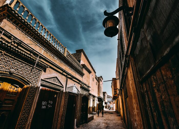 Ankomst tidlig om morgenen til Kashgar, et av Silkeveiens mest myteomspunne knutepunkter der handelsveier fra Kina, Sentral-Asia og India gjennom århundrer har krysset hverandre. Byen ligger ved kanten av Taklamakanørkenen og har lenge fungert som den siste store oasen før fjellpassene i Pamir og videre vestover. Her møtes språk, dufter og tradisjoner i et miljø der karavanenes tempo fortsatt kjennes nærværende i gatenettet, håndverket og markedslivet.