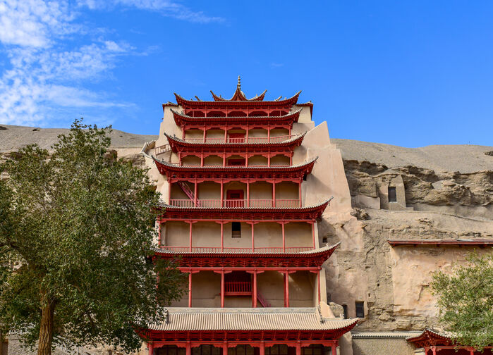 Frokost på hotellet før besøk ved Mogao-grottene, et av verdens mest betydningsfulle buddhistiske kunstsentre. Grottene begynte å bli anlagt på 300-tallet og ble utvidet gjennom nesten tusen år av munker, handelsmenn og pilegrimer som reiste gjennom området. Veggmalinger og skulpturer skildrer buddhistiske fortellinger, men også hverdagsliv, reiser og karavaner. Samlet danner de et omfattende bildearkiv over livet langs Silkeveiens handelsruter. Her møttes kulturelle påvirkninger fra Kina, India og Sentral-Asia, noe som fortsatt er tydelig i både motiver, farger og kunstneriske uttrykk.