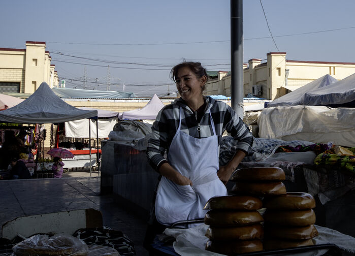 Vi besøker en av Tasjkents store markeder der fersk frukt, krydder, brød og lokale spesialiteter selges i et mylder av farger og dufter. Her merkes fortsatt byens rolle som handelsplass der mennesker møtes for å kjøpe, selge og utveksle nyheter. Etter markedsbesøket spiser vi lunsj på en lokal restaurant.