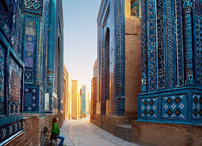 Heldag i Samarkand, en av de mest berømte byene langs Silkeveien. Under Timuridenes styre utviklet Samarkand seg til et sentrum for vitenskap, arkitektur og handel. Her samlet lærde menn, håndverkere og handelsreisende seg fra store deler av den da kjente verden.