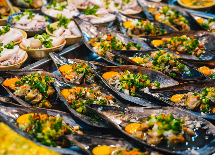 Deretter besøker vi byens nattmarked, fylt av håndverk, klær, street food og ferskpressede juicer. En god anledning til å smake banh mi, grillspyd eller sukkerrørsjuice.