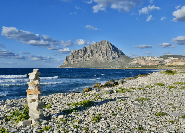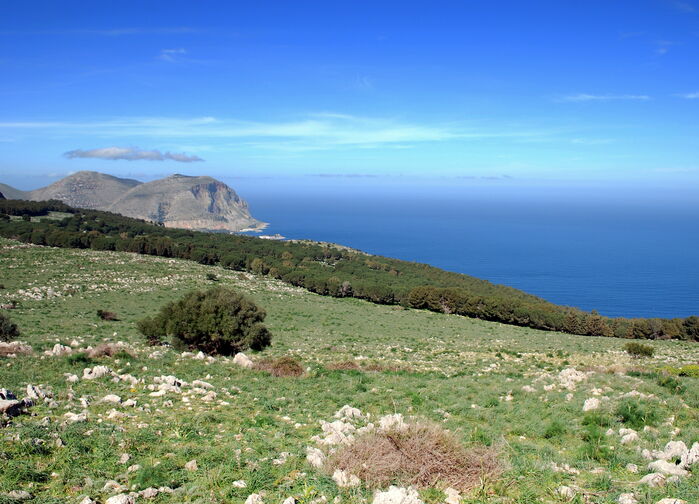 Vi reiser til Monte Cofano, som reiser seg 659 meter over havet. Under vandringen rundt fjellet møtes vi av åpne utsikter, hav i horisonten og et rikt planteliv med orkidéer, kaktuser og ville urter.