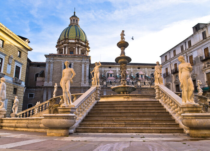 På ettermiddagen guidet byvandring i Palermo. Vi ser Quattro Canti, katedralen, det normanniske palasset og Cappella Palatina (inngangsbilletter kommer i tillegg). Vi avslutter ved et av byens livlige markeder, hvor det sicilianske kjøkkenet står i sentrum. Frokost og pikniklunsj er inkludert. [F, L]