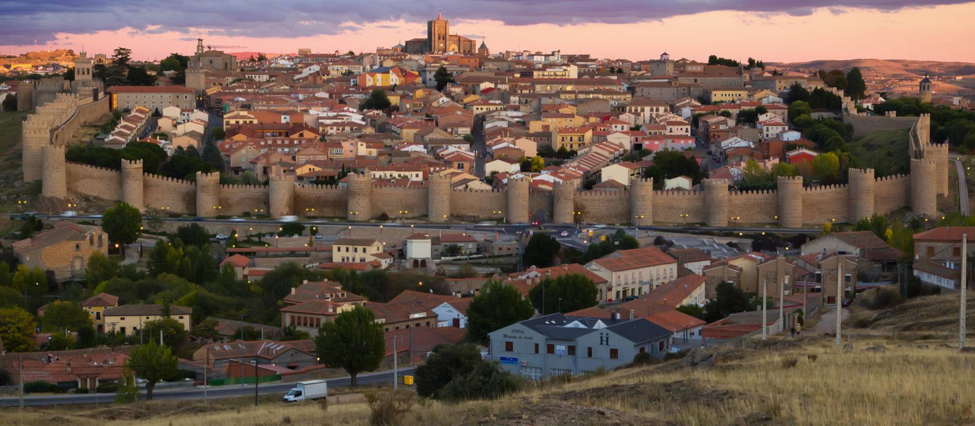 Vi tar farvel med Madrid og reiser nordover mot fjelltoppene i Guadarrama til Ávila, Spanias høyest beliggende by, 1131 meter over havet. Ávila har spilt en viktig rolle i Spanias historie – både religiøst og politisk. Noen av Spanias mektigste familier har sine røtter her. Men byen er mest kjent for sine to store helgener, den hellige Teresa og den hellige Johannes av Korset. Begge levde og virket her på 1500-tallet. I likhet med Cáceres, Mérida og Toledo står byen på UNESCOs verdensarvliste. Innenfor de enorme og intakte bymurene, som er over 2,5 kilometer lange og stammer fra 1000- og 1300-tallet, ser vi en rekke middelalderbygninger i svært god stand.