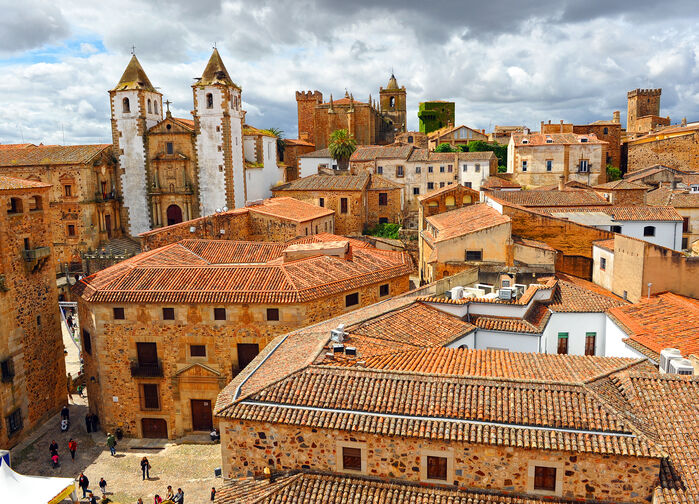 Dagen begynner med en byrundtur til fots som tar oss med tilbake til 1400- og 1500-tallets Spania. Få byer i Spania var mer involvert i oppdagelsen av den nye verden enn Cáceres. En av byens mest berømte personligheter er Hernán Cortez, erobreren av Mexico. Flere av Spanias mektigste familier hadde sine residenser her på 1500- og 1600-tallet.