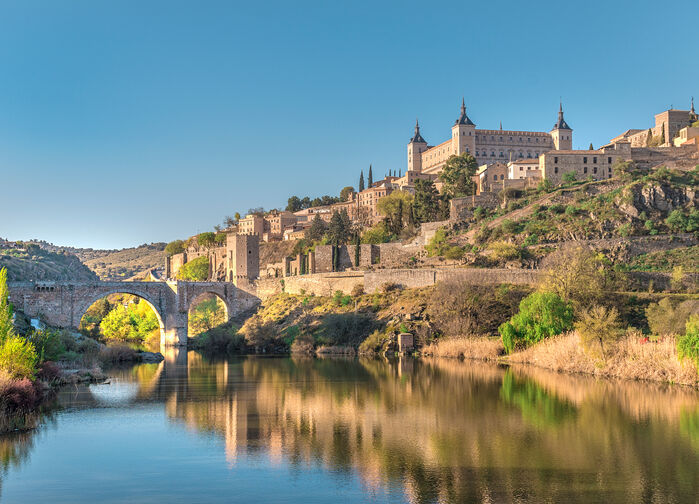 Toledo, som ofte omtales som El Grecos by, ligger vakkert til på en klippe omgitt og beskyttet av elven Tajo. Vi tar oss til toppen av en klippe, og herfra gjenkjenner vi et av El Grecos favorittmotiver med Alcázar i det fjerne i ensom majestet over middelalderbyen.